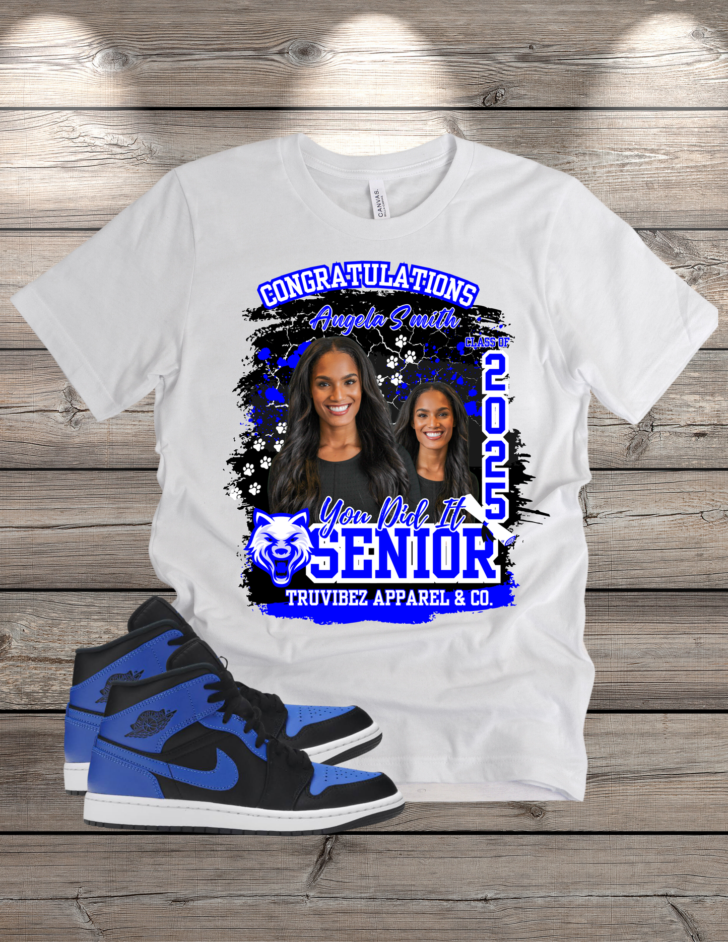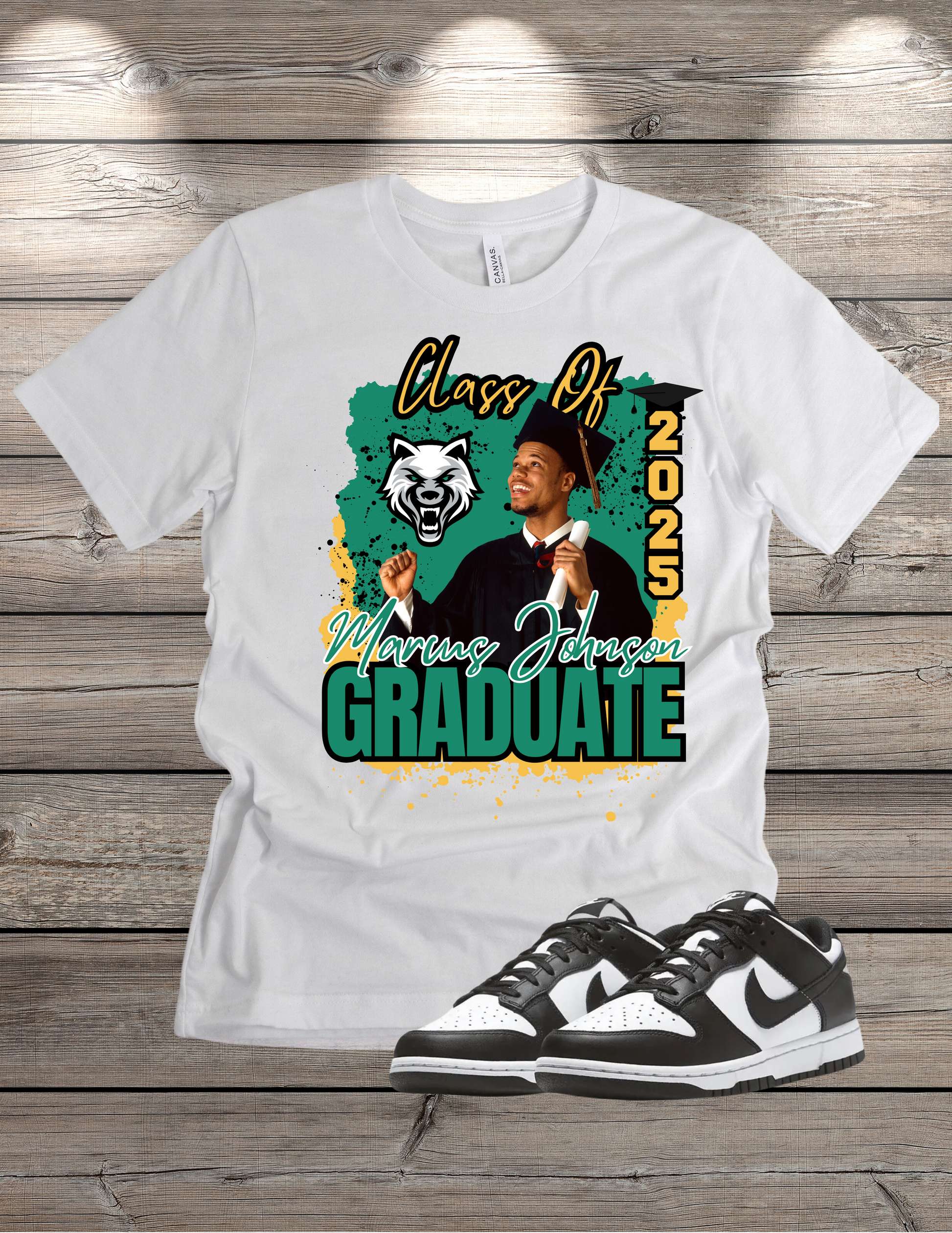 Crafted with 100% cotton, 2025 Grad Shirts offer pre-made templates that let you easily create a personalized t-shirt with your picture, name, and school. Elevate your graduation experience and proudly show off your accomplishment with this customizable garment.