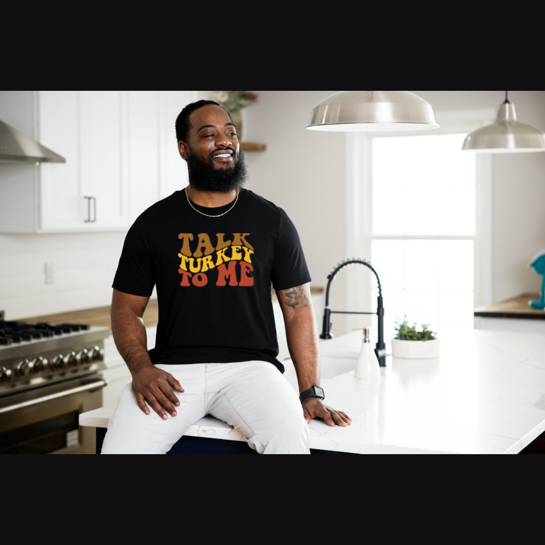 Talk turkey to me T-shirts. 100% (unisex) cotton.