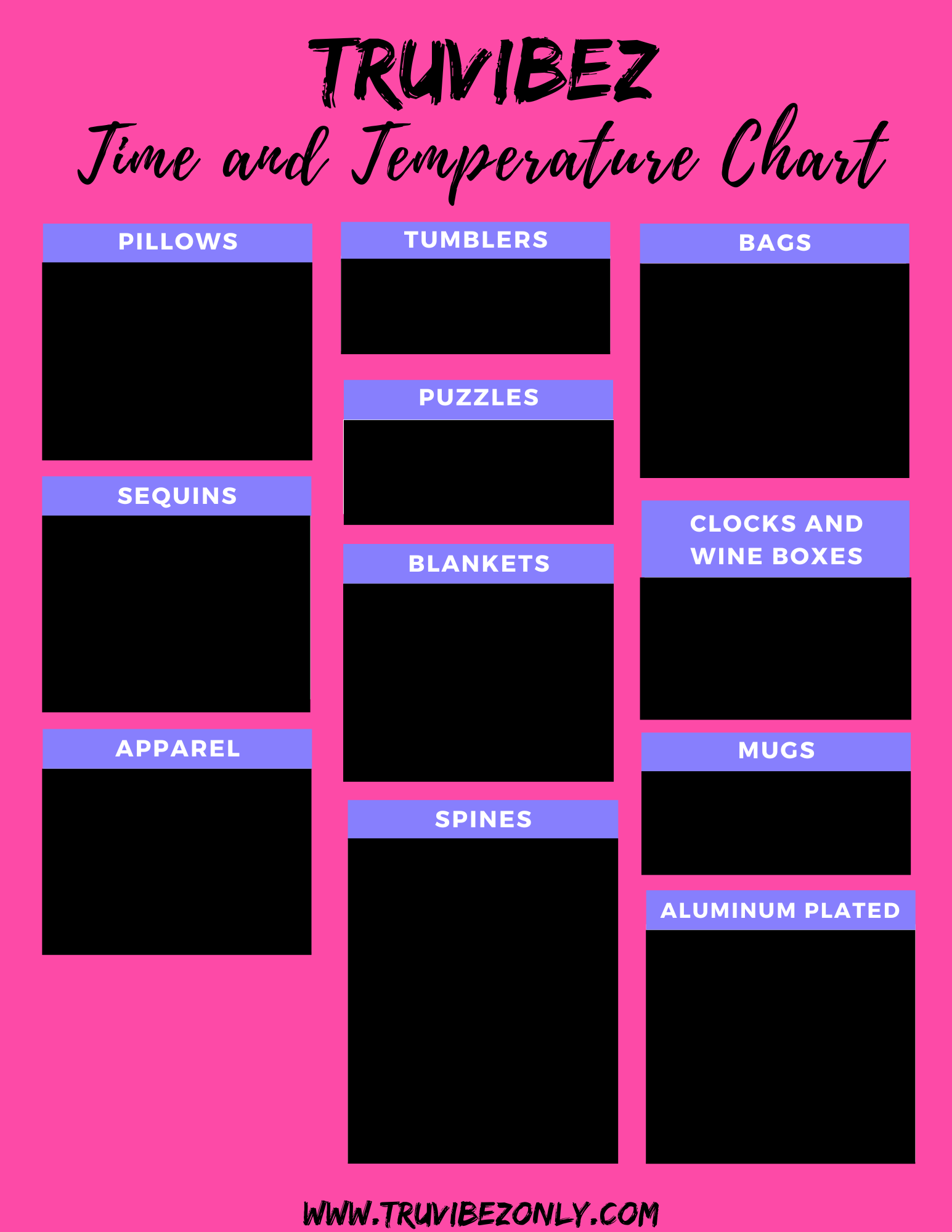 Sublimation Time & Temp Chart