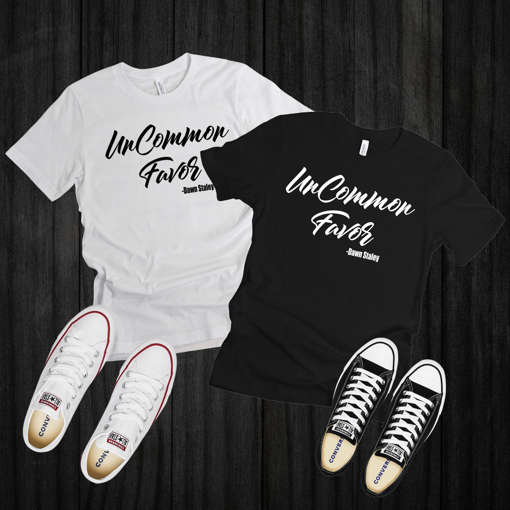 Uncommon Favor offers a T-shirt with an inspired quote to add a unique touch to your wardrobe. Made with high-quality materials for durability and comfort, this shirt is perfect for those seeking a stylish and meaningful addition to their clothing collection.